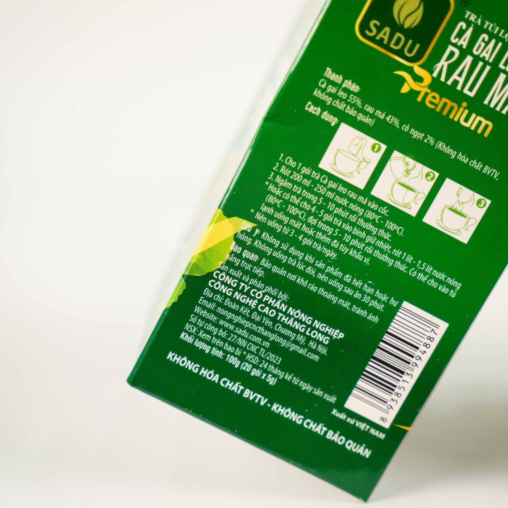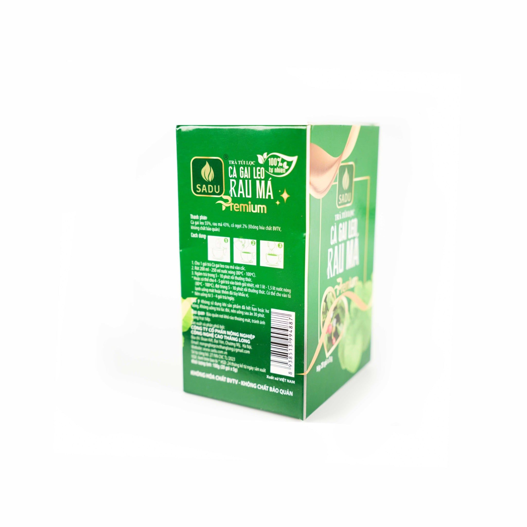 Trà Sadu được sản xuất từ thảo dược tự nhiên trong nước như: cà gai leo, xạ đen, khôi đốm, hoàn ngọc… (tùy dòng sản phẩm). Nguyên liệu được tuyển chọn kỹ, phơi sấy đúng quy trình, không trộn tạp.